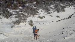 mouillerons dans 5 pi d'eau avec les quilles à quelques pouces du fond et la baignade fût des plus agréables. Le lendemain nous ferons voler le cerf volant et metterons à l'essai la caméra volante pour la première fois. Le résultat fût concluant mais il y a encore des améliorations à faire. Le 9 nous irons porter au sommet de BouBou Hill un iéroglif fait de nos mains le matin même à l'éfigie de notre fidèle ami Tribull. ... |
