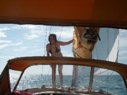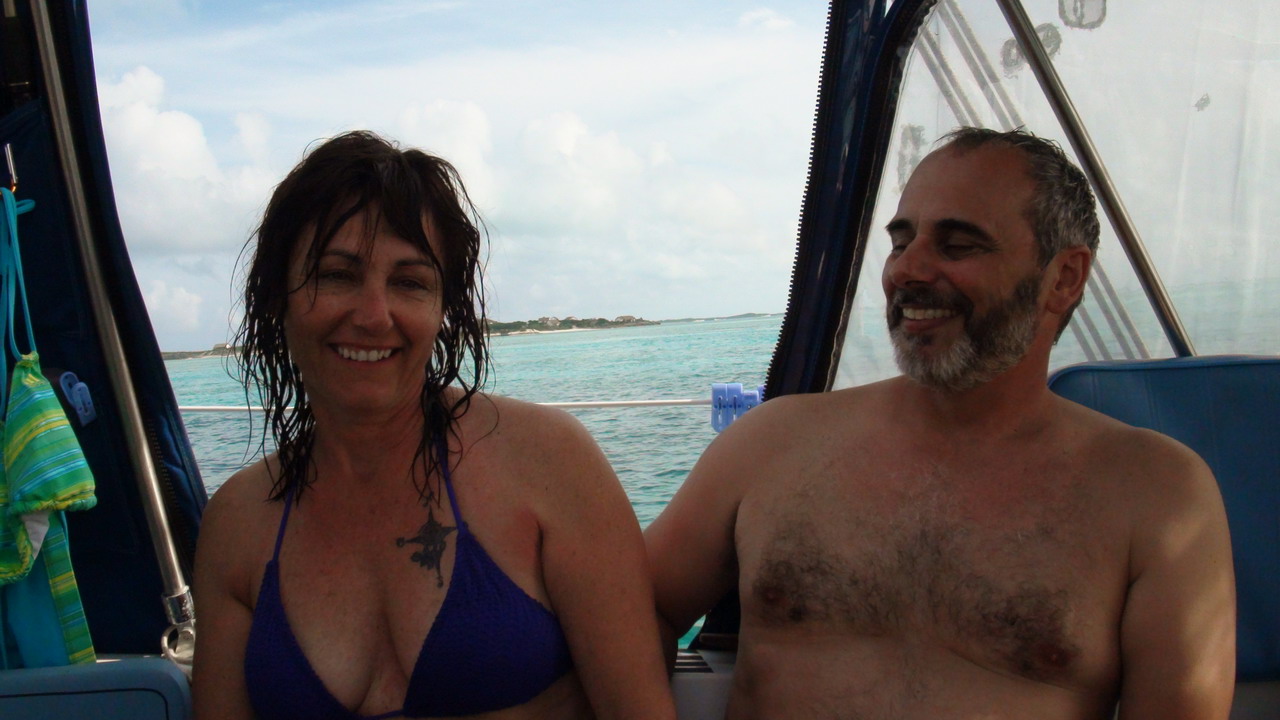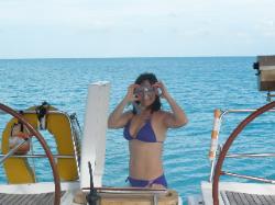 naviguent en direction de Norman Cay et à leur arrivé, un 5 à 7 s'organise. --> Le 6 nous organisons la première baignade sur un petit récif derrière le bateau. |