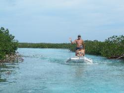 | Le 8 au matin, nous déplaçons la flotille en direction de Shroud Cay pour y visiter la mangrove qui agit comme nurserie et abri de protection pour la faune et la flore locale... |