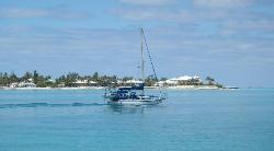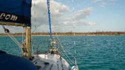 vers Great Sale Cay, un peu plus de 7 heures. Il fait beau, la mer sur le banc est calme, tout va très bien. Avec Franc Nord la veille, nous avions convenus de partir tôt ce matin, soit à 6h30. Mais, on réalise que dans la nuit du 9 au 10 nous devons avancer l'heure... Donc, il fera encore noir. Nous allons donc partir à 7h30, avec le lever du soleil. Ce sera plus facile aussi pour sortir de la marina. Great Sale Cay est une île déserte. Mais comme elle est à mi-chemin entre Spanish Cay et West End, c'est un arrêt "technique" pour plusieurs navigateurs en direction de la Floride ou en provenance de celle-ci. |