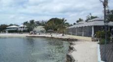 et Bluff House Resort & Marina. Le long de la plage, un singe s'ammuse dans les arbres à la recherche de cocos... Et Louise qui se magasine une petite voiture écologique hybride... |