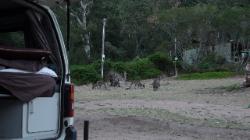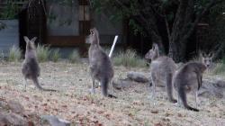 les premiers kangourous sortent des buissons