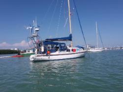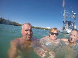 vers le Sud Ouest et nous voilè arrivée à Marathon. 452Mn nous sépare maintenant de notre marina GCSM qu'on à quitté il y a maintenant 9 semaines... On peut vraiment dire qu'on fait de la plaisance et non de la course... Ce mouillage est constitué de 226 mooring et est gérer par la municipalité de Marathon et est vraiment de qualité supérieur, il est super protégé. On y retouve deux immense quai pour annexes et quelques zones d'ancrages. La cerise sur le sunday c'est le manager de la marina Ty Thurman qu'on voit ici avec nous. Il est également le chanteur de son groupe de musique (LEAP THE CREEK) |