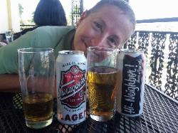 de Louise. Nous ferons donc escale à Cocoa au nord du Cap Canaveral Barge Canal ou nous aurons un bris de safran qui est resté coincé, le coussinet du haut s'étant cassé, j'ai donc fait une réparation de fortune qui devra tenir encore 175Mn jusqu'à la marina. Ça y est, on s'est rendu à Saint Augustine, toujours au mooring SM-23 du côté nord du pont Bridge of Lion. Nous irons pour la fête de mon amour, marcher en ville et manger au restaurant A1A devant un bonne Lager NARRAGANSETT |