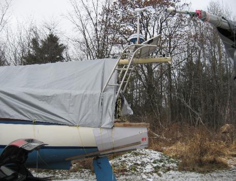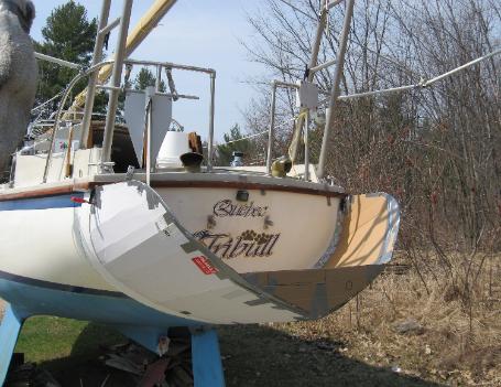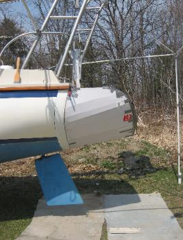 me permeterons d'allonger le bateau de 36 pouces et d'y intégrer des coffres utilitaires pour le propane soit 3 bombonnes de 10 livres une échelle escamotable et le mécanisme du futur régulateur d'allure CapHorn. Pour me simplifier, je prend un carton qui donnera une bonne idée du résultat final. |