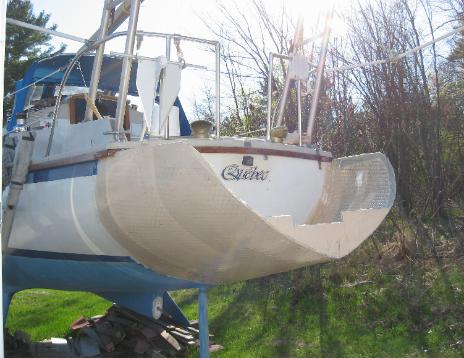 je pose avec mon ami Sylvain Villeneuve du voilier TAO qui m'a aider à placer les nattes de toiles qui font plus de 9 pieds de long. |
