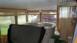 | Automne 2012 Extension du garage de 12 pieds sur pieux vissés pour y loger; le canot de cèdre 1952, la souffleuse, la tondeuse, le golf cart Ez-Go la bagnole Volvo C-70 2004, la tondeuse, la souffleuse et milles et une autres choses... Printemps 2013 Patenter une modification à la porte du garage et à son rail afin d'y ajouter une petite porte latérale qui nous permettra d'avoir assez de largeur pour y passer la voiture lors des périodes d'entreposage hivernal ... |